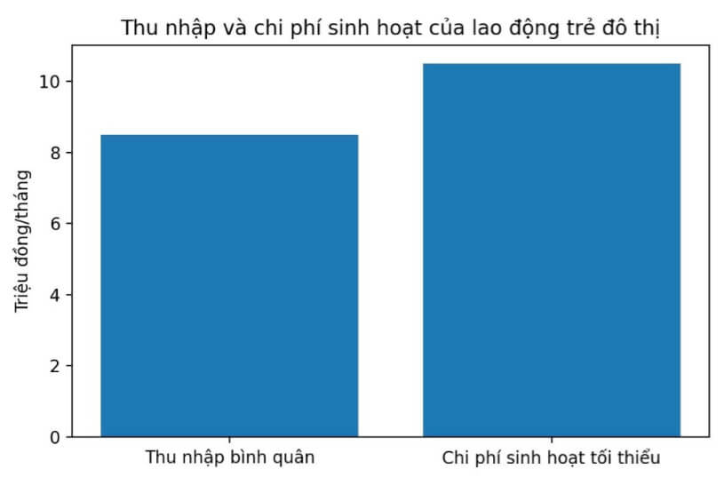 Biểu đồ về thu nhập thực tế và chi phí sinh hoạt của lao động trẻ tại đô thị. Ảnh: Quỳnh Chi